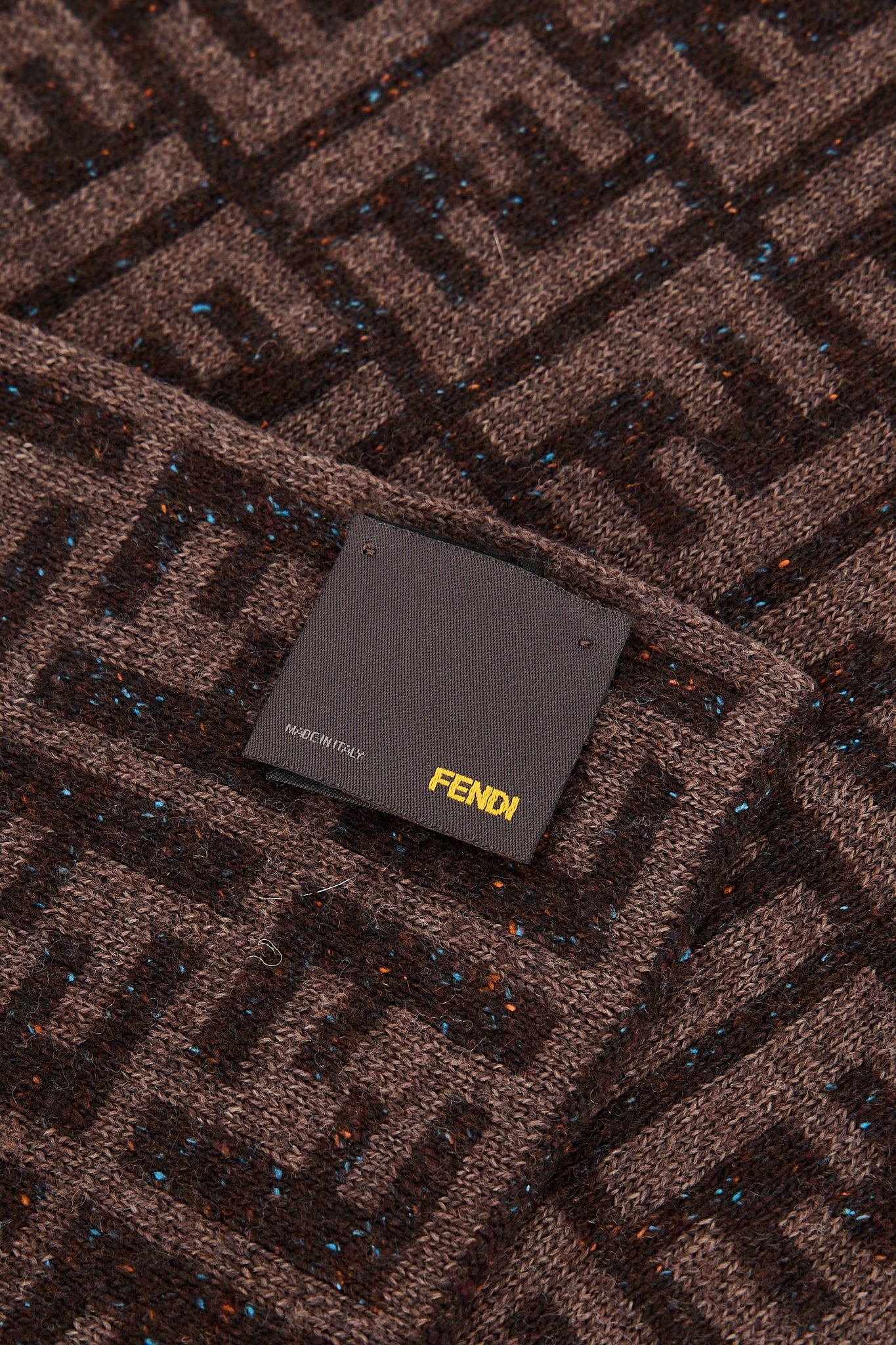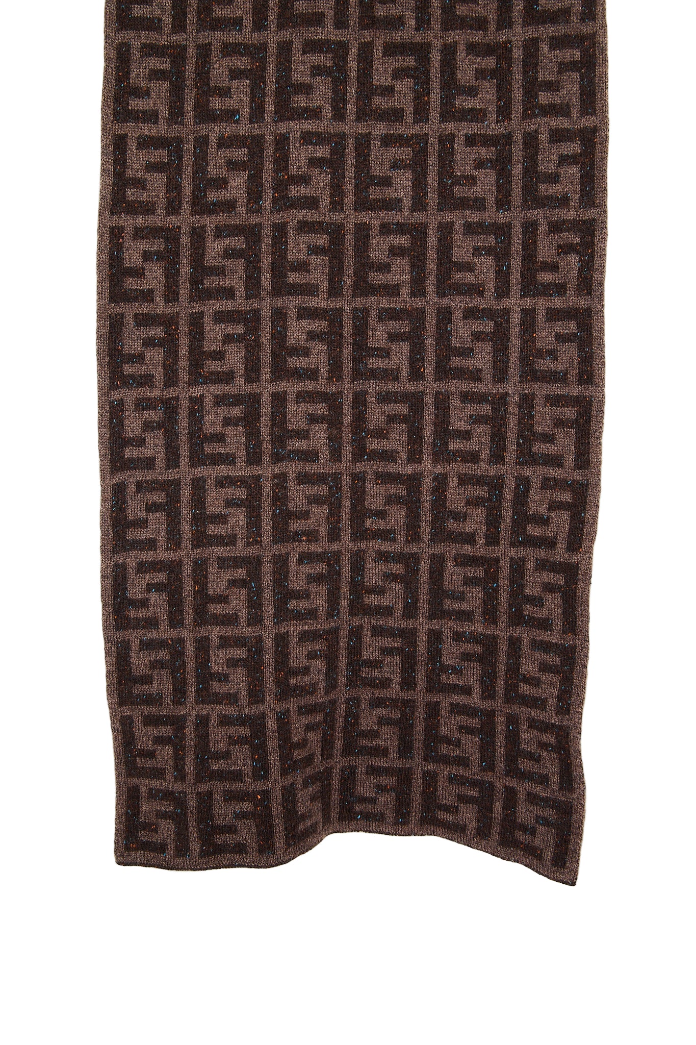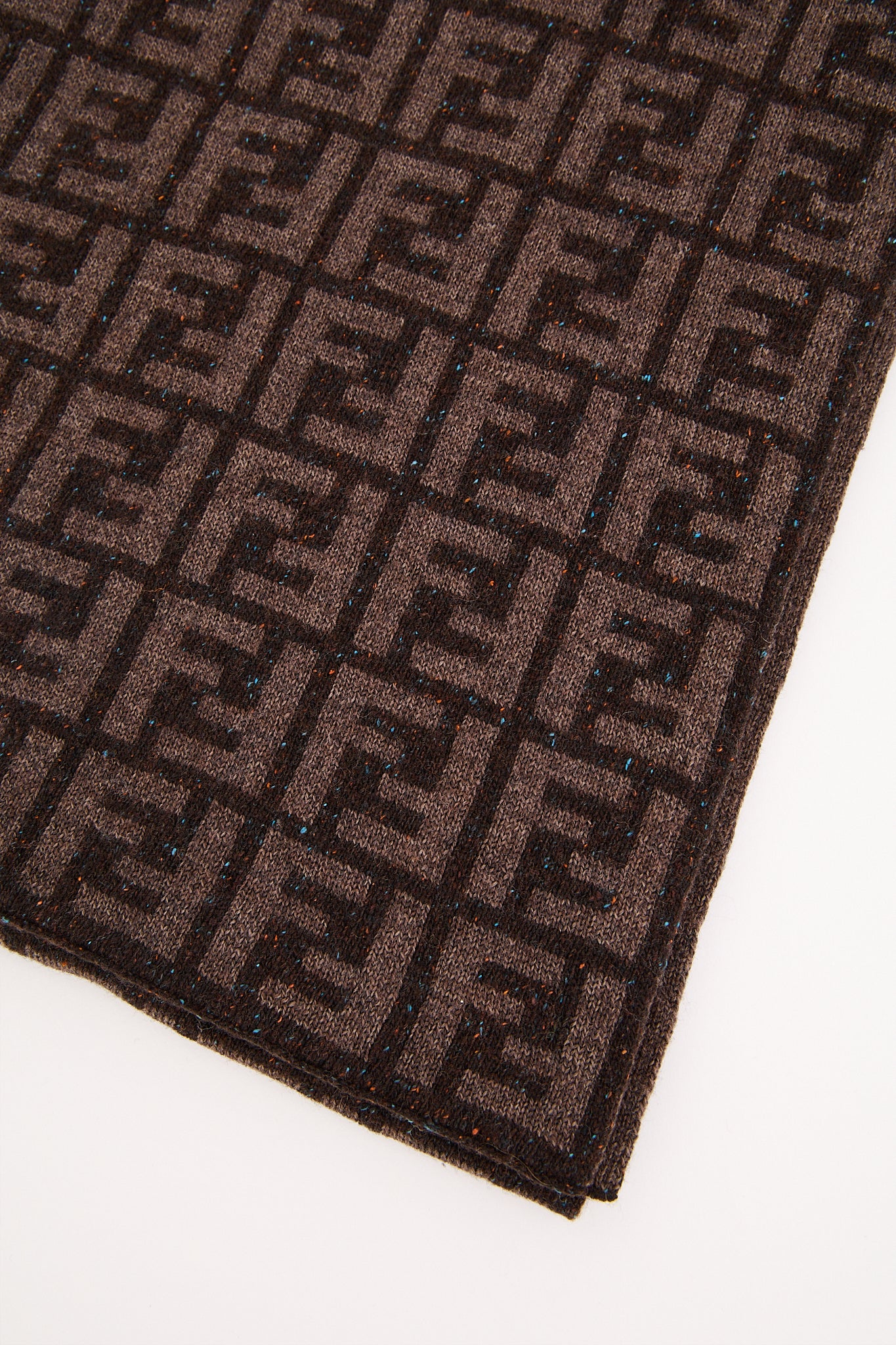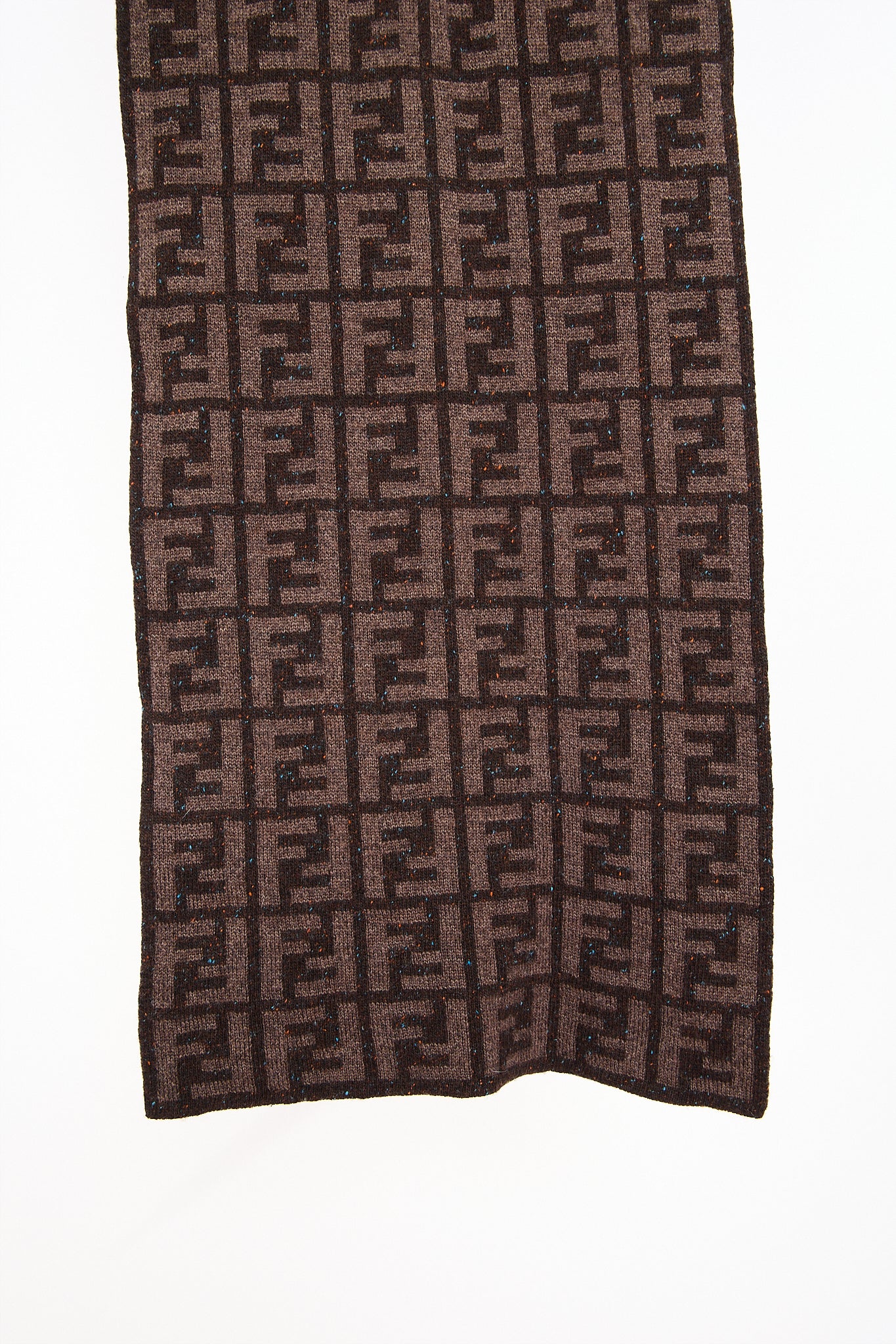 Luksuriøst Fendi tørklæde i blød, varm uld med det ikoniske FF-logo i sort og brun.