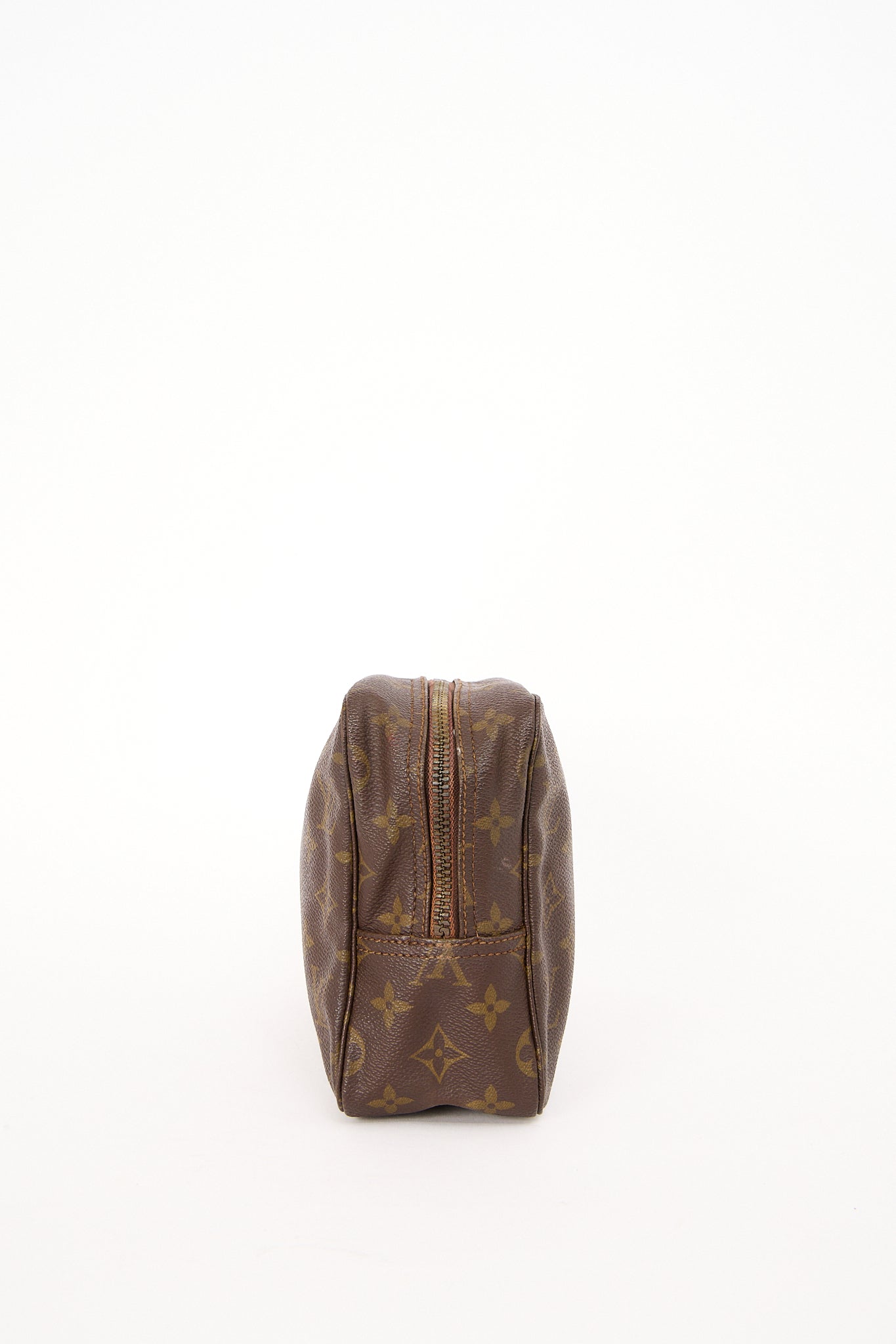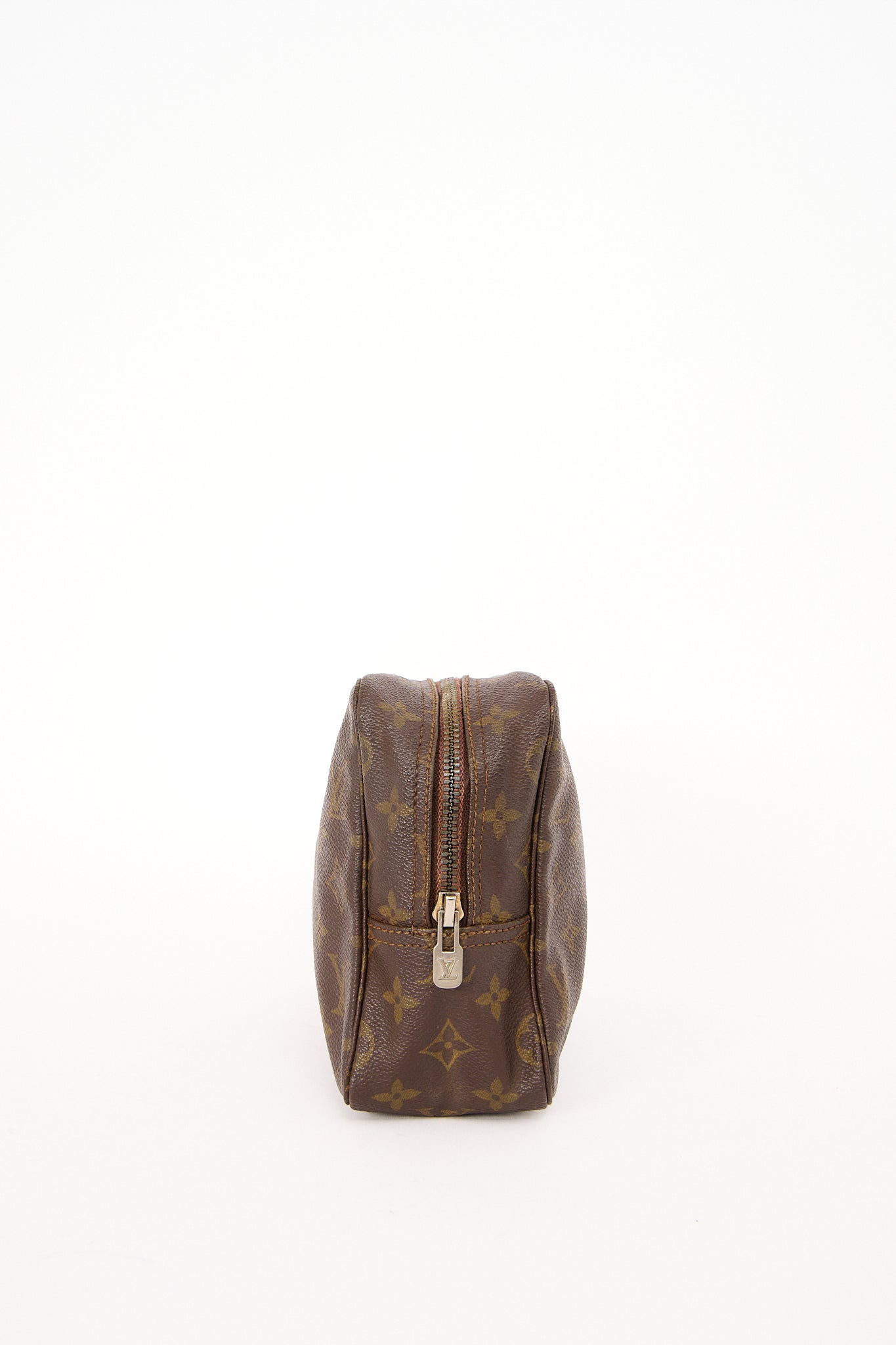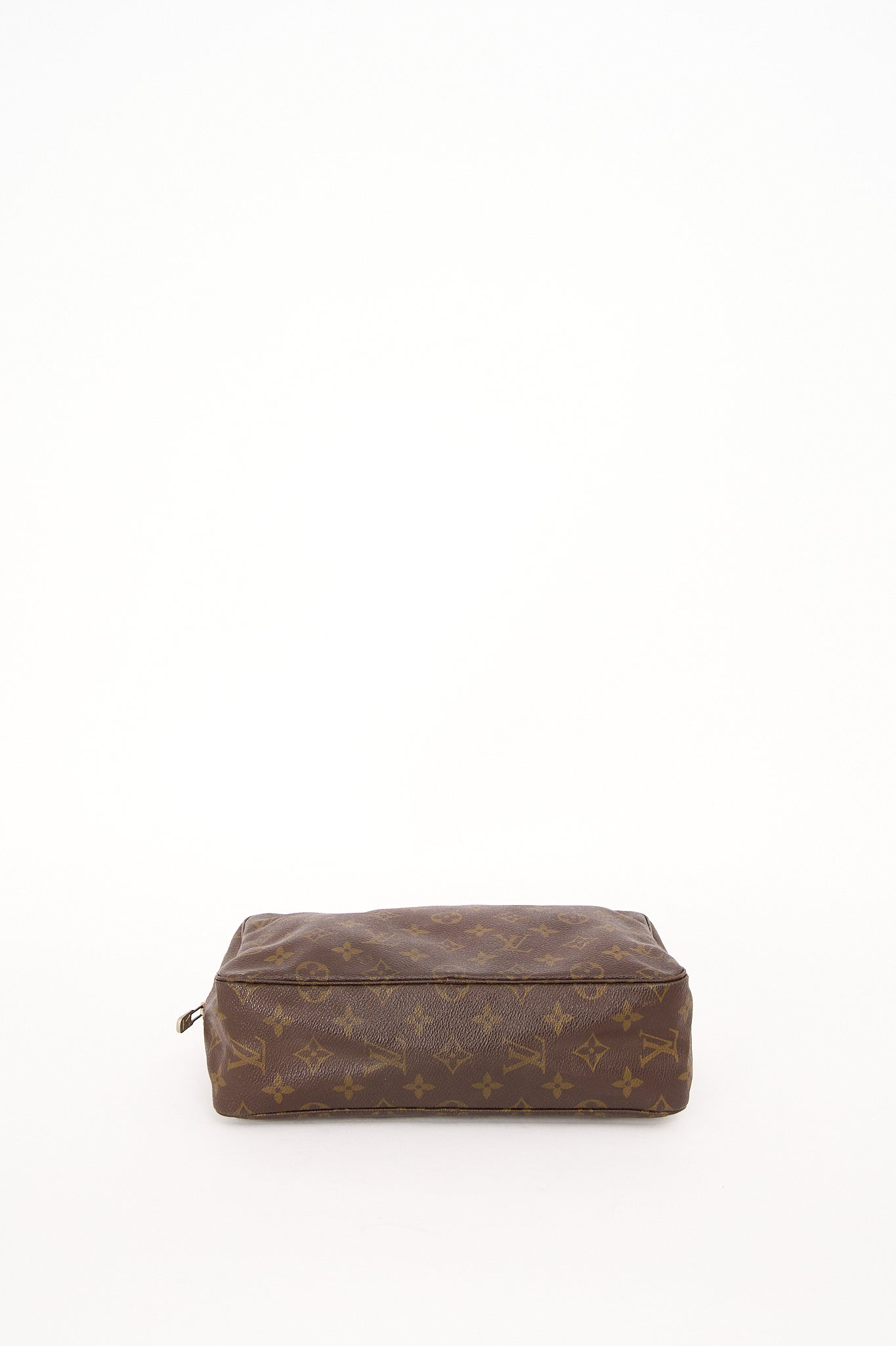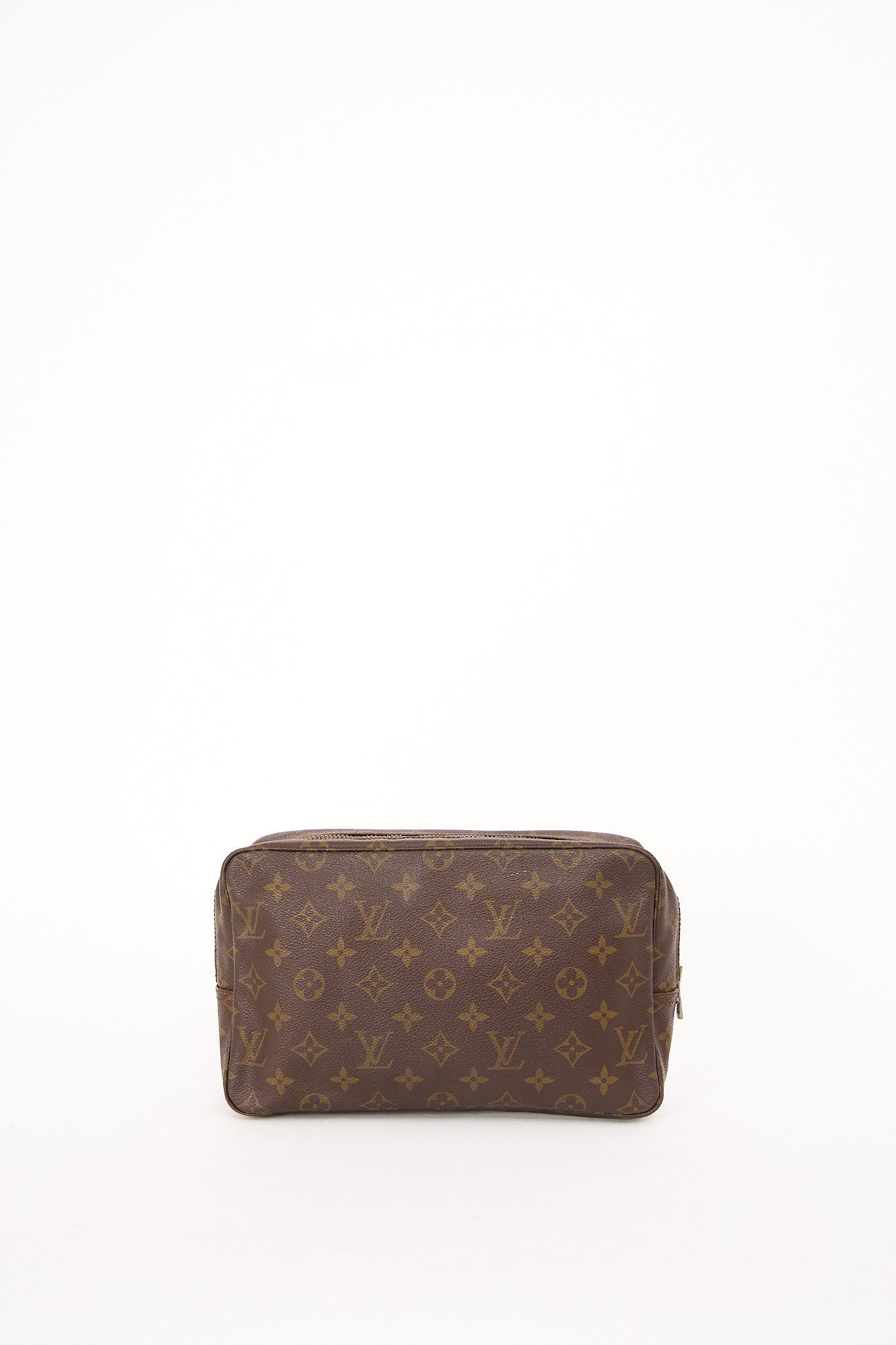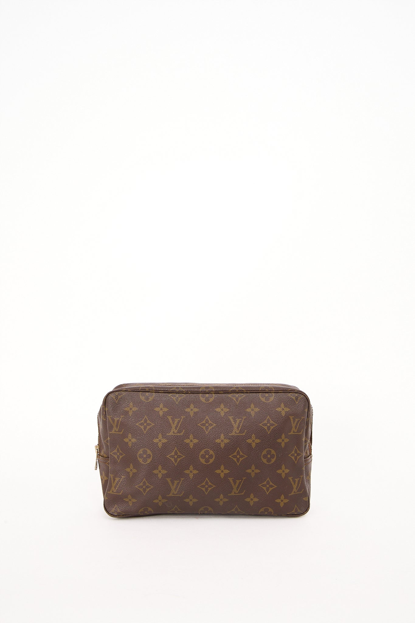 Louis Vuitton Toilette 28 i ikonisk Monogram Canvas. En tidløs og super anvendelig LV-classic, der fungerer perfekt som toilettaske i weekender og på rejser, men også som clutch/organizer i en større taske. Den rene, minimalistiske form gør den let at style, og monogram-canvas er kendt for sin slidstyrke og for at holde sig flot over tid.