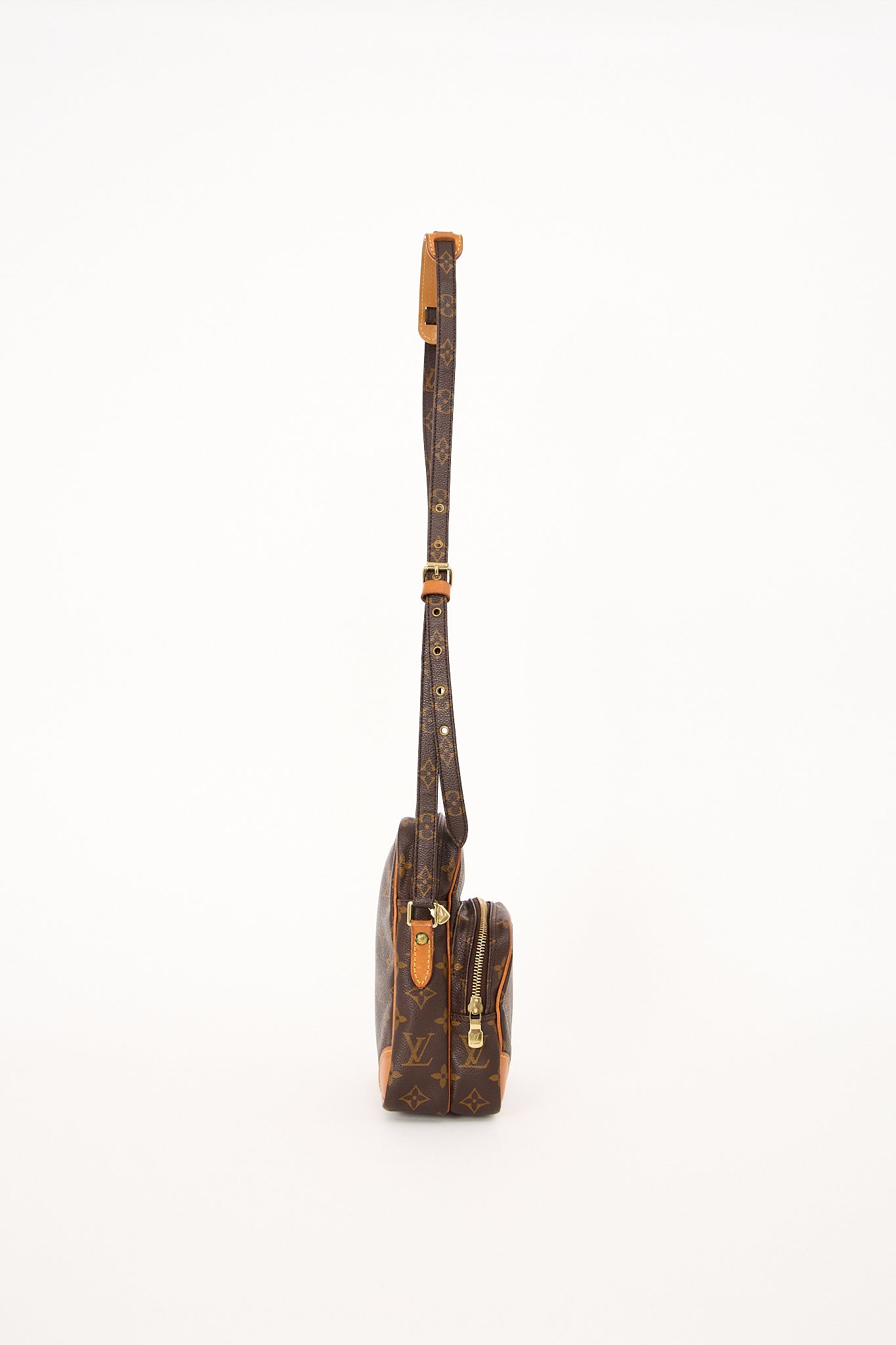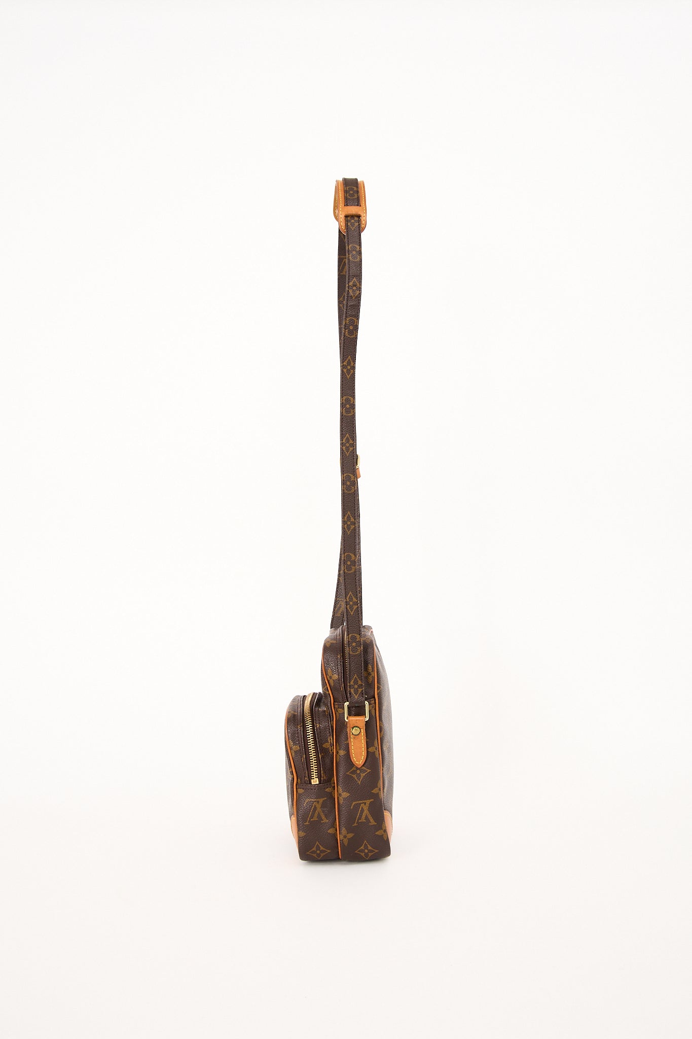Louis Vuitton Amazone i klassisk Monogram Canvas med vachetta-læderdetaljer og justerbar skulderrem. Amazone er en eftertragtet vintage crossbody, kendt for sin slanke, funktionelle form og sin gode organisering. Modellen har et hovedrum med lynlås samt en praktisk frontlomme, hvilket gør den ideel til både hverdagsbrug, rejser og cityture, når du vil have hænderne fri – uden at gå på kompromis med et tidløst Louis Vuitton-look.