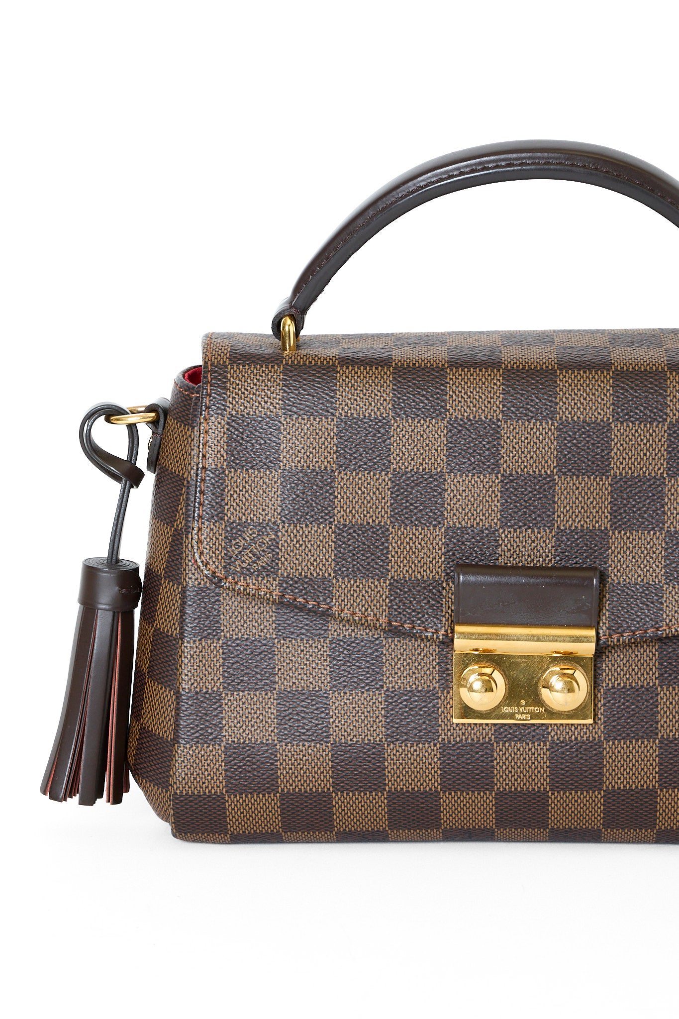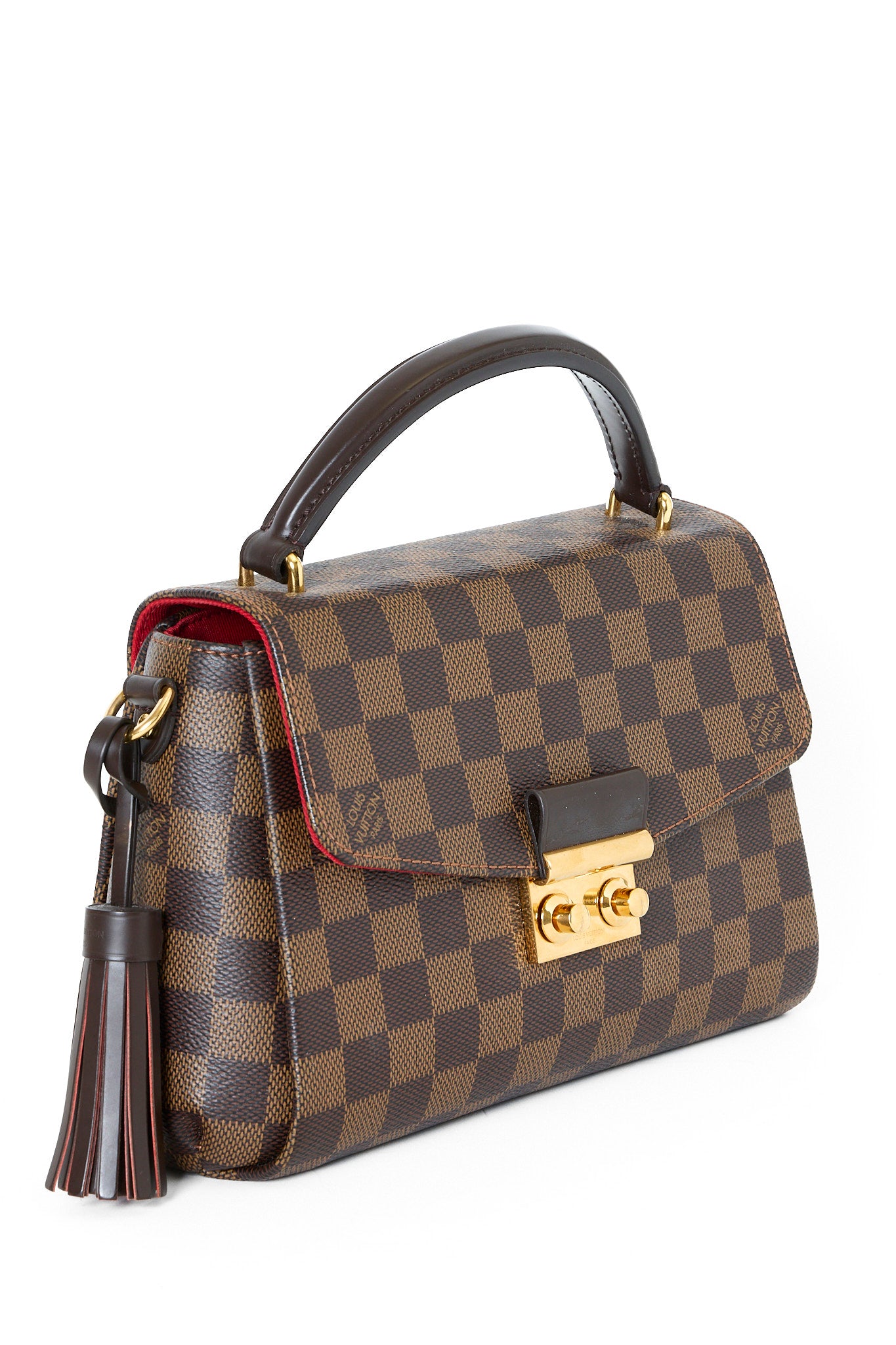 Opdag Louis Vuitton CROISETTE, en elegant taske lavet af det klassiske Damier Ebene canvas og blødt kalveskind. Denne model har et raffineret design med en stilfuld topstrop og læderkvast. Et elegant valg til enhver festlig lejlighed. Luksus og elegance ses i hver detalje.
