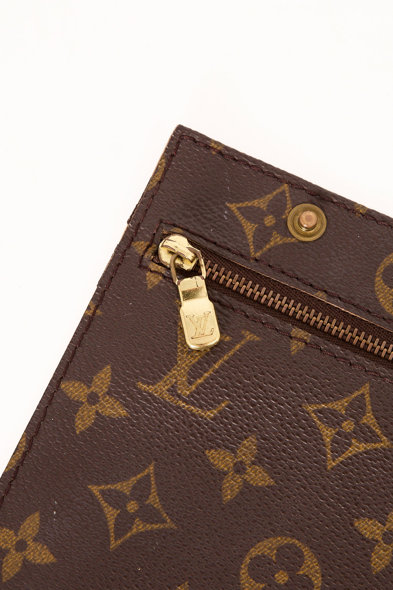 Klassisk Louis Vuitton Clutch i ikonisk monogram-canvas med gyldne detaljer. Denne model er ofte medfølgende til Neverfull-tasken og fungerer perfekt som clutch, pung eller til organisering i større tasker. En tidløs accessory i slidstærkt coated canvas med lynlåslukning og messinghardware.