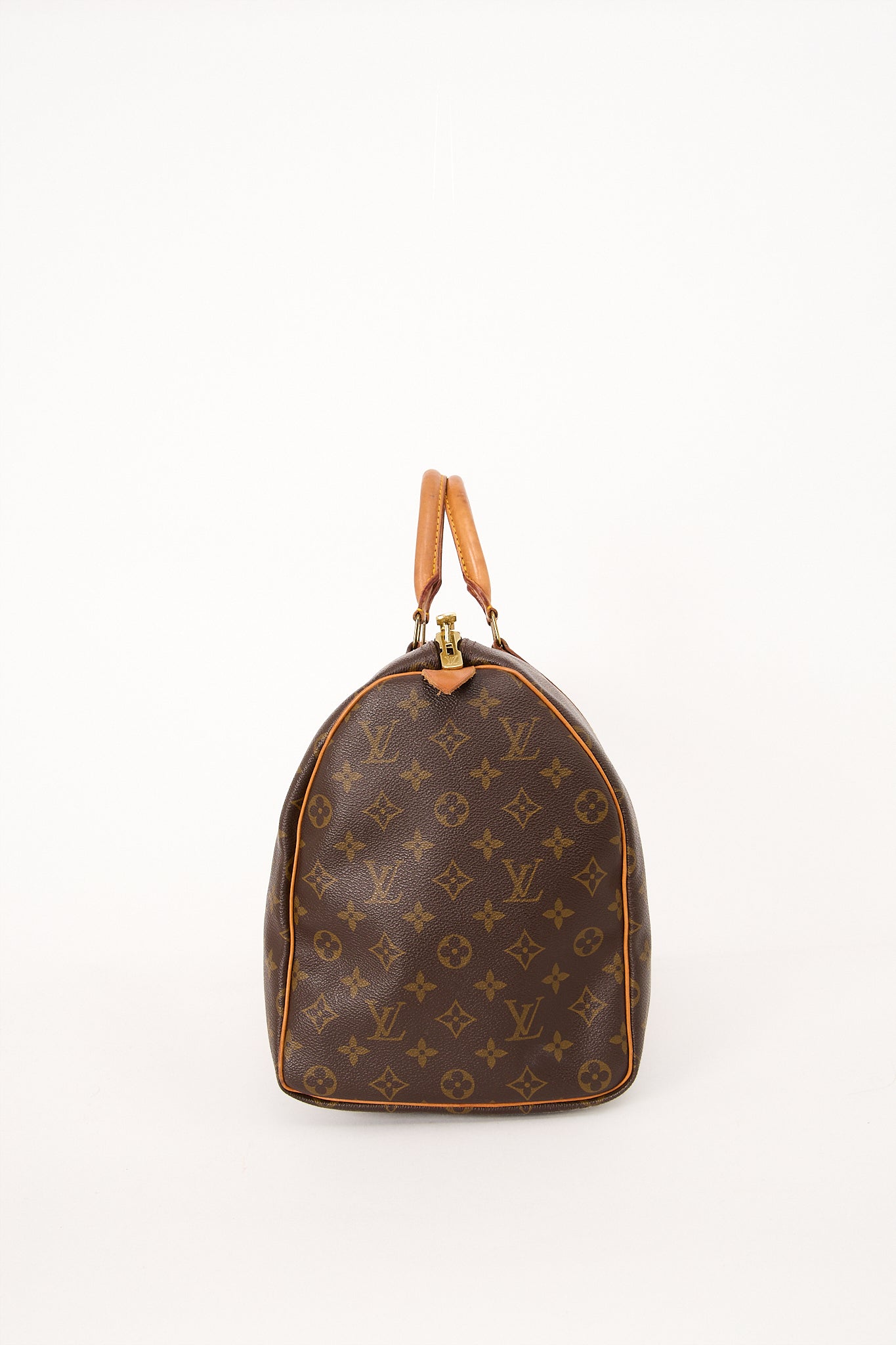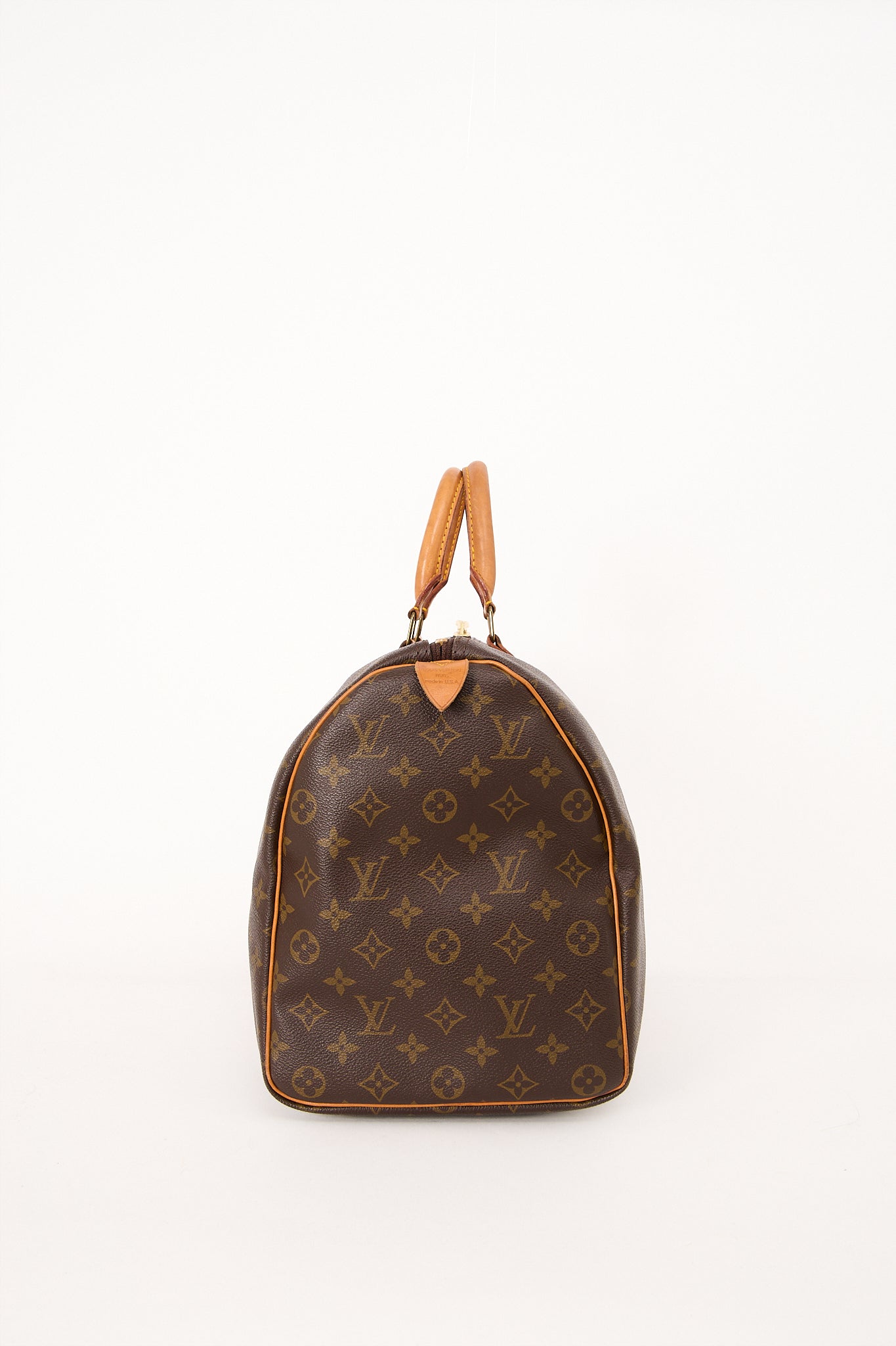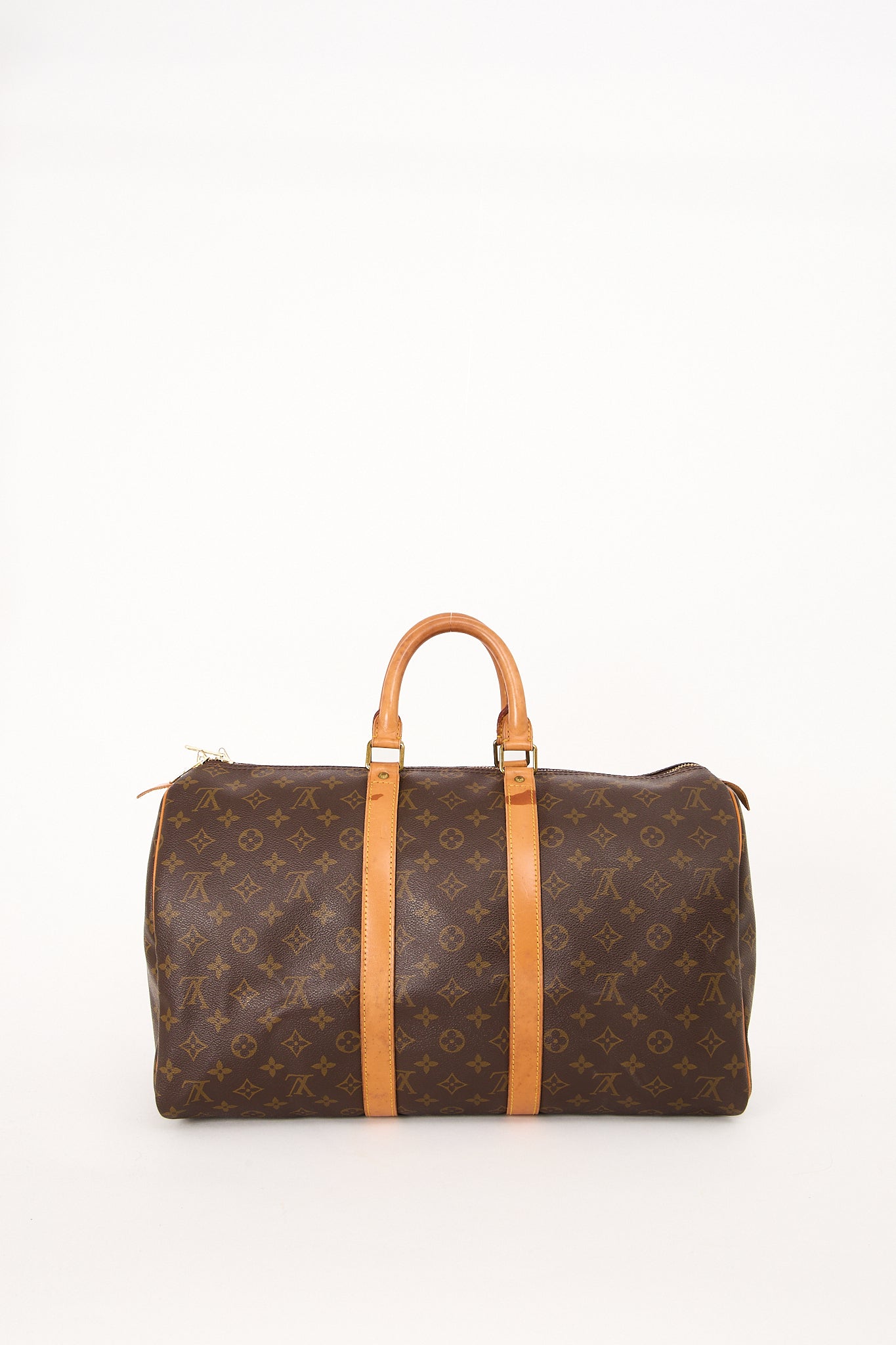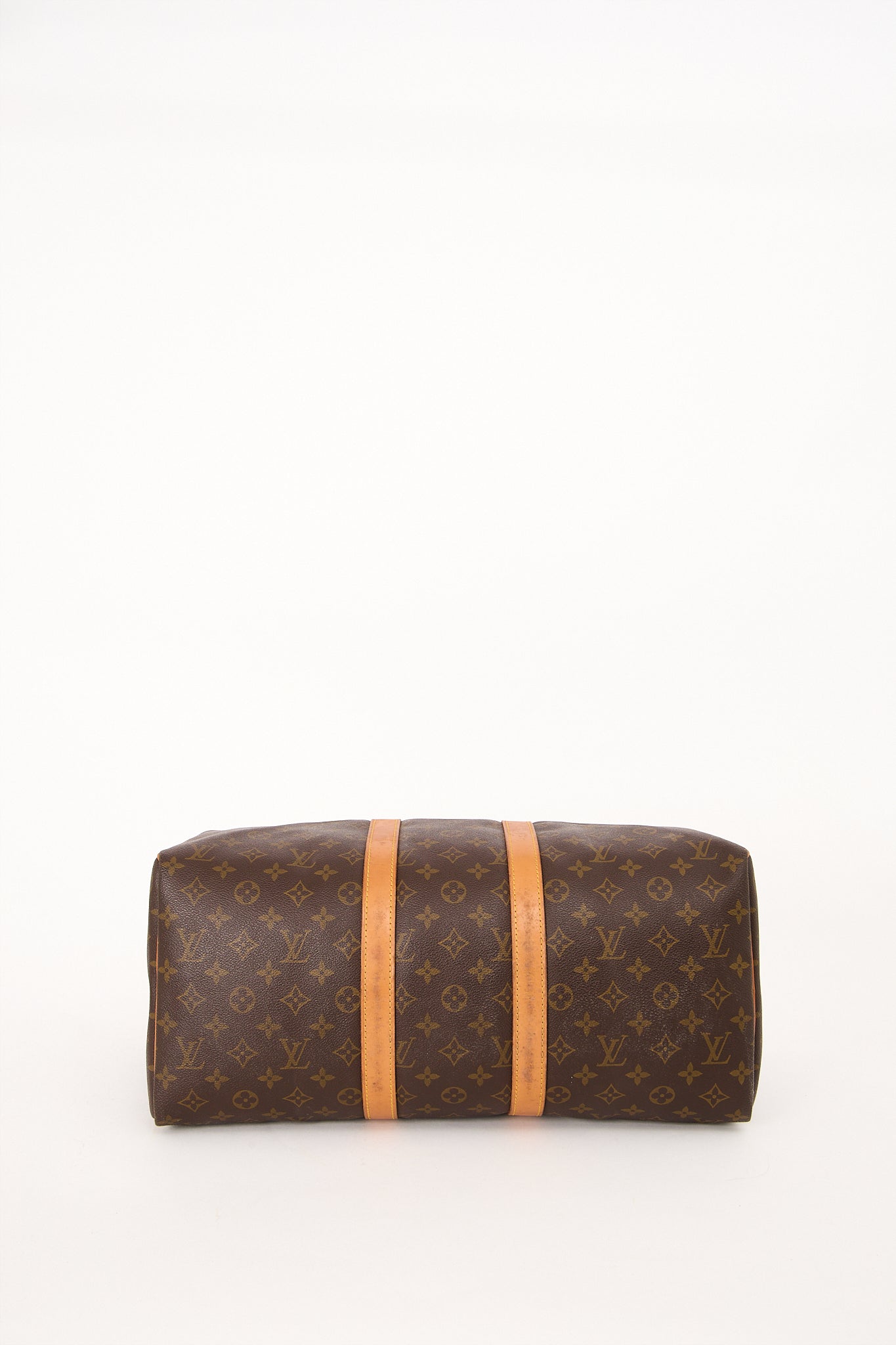 Ikonisk Louis Vuitton Keepall 45 i det tidløse Monogram Canvas med naturlige vachetta-læderdetaljer. Modellen er en af LV’s mest eftertragtede rejsetasker og fungerer perfekt som weekendtaske, håndbagage eller som stilren carry-all til hverdagsbrug. Tasken har de karakteristiske læderremme hele vejen rundt, dobbelt lynlåslukning og et klassisk, struktureret udtryk, der holder sæson efter sæson.