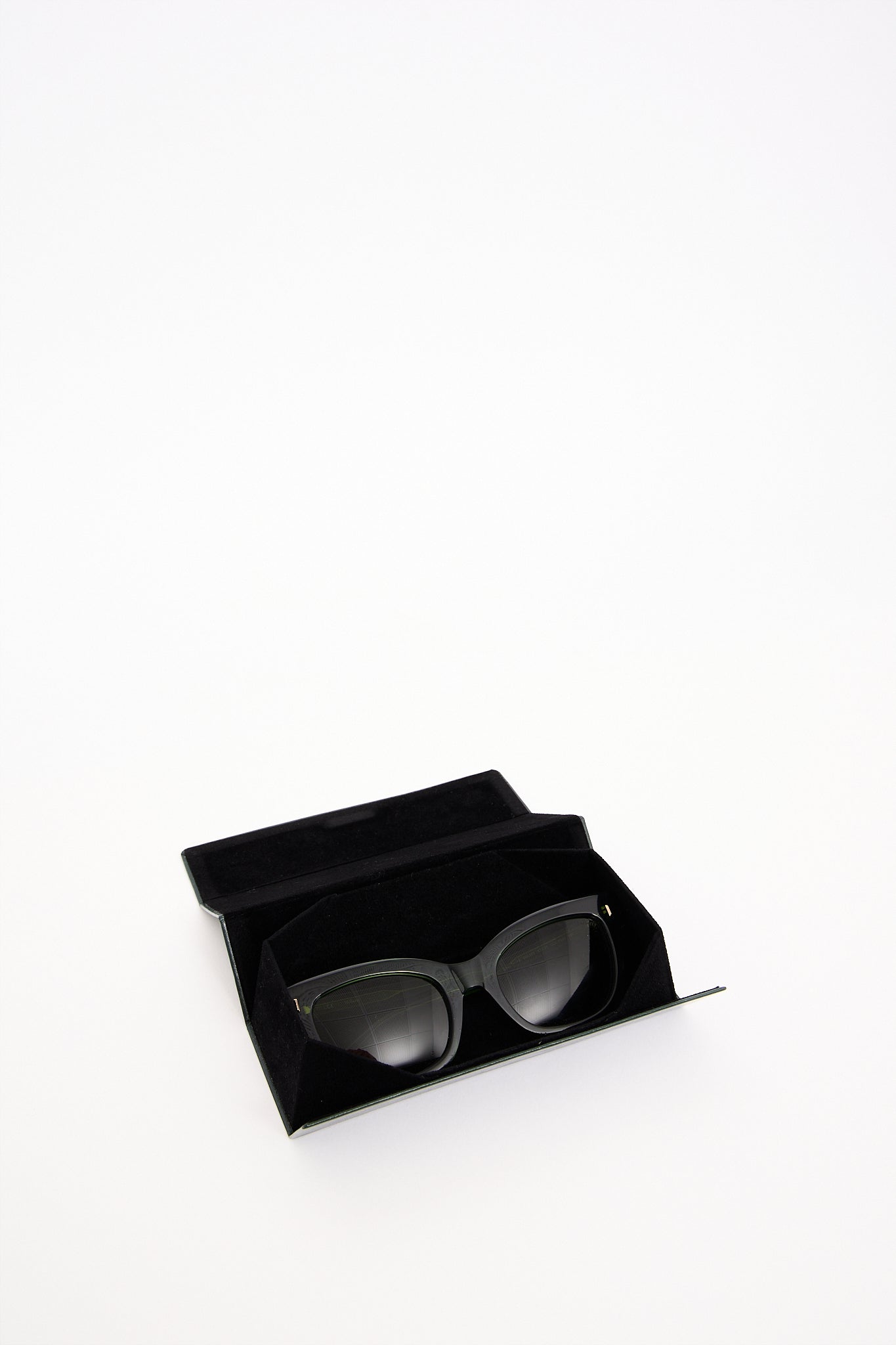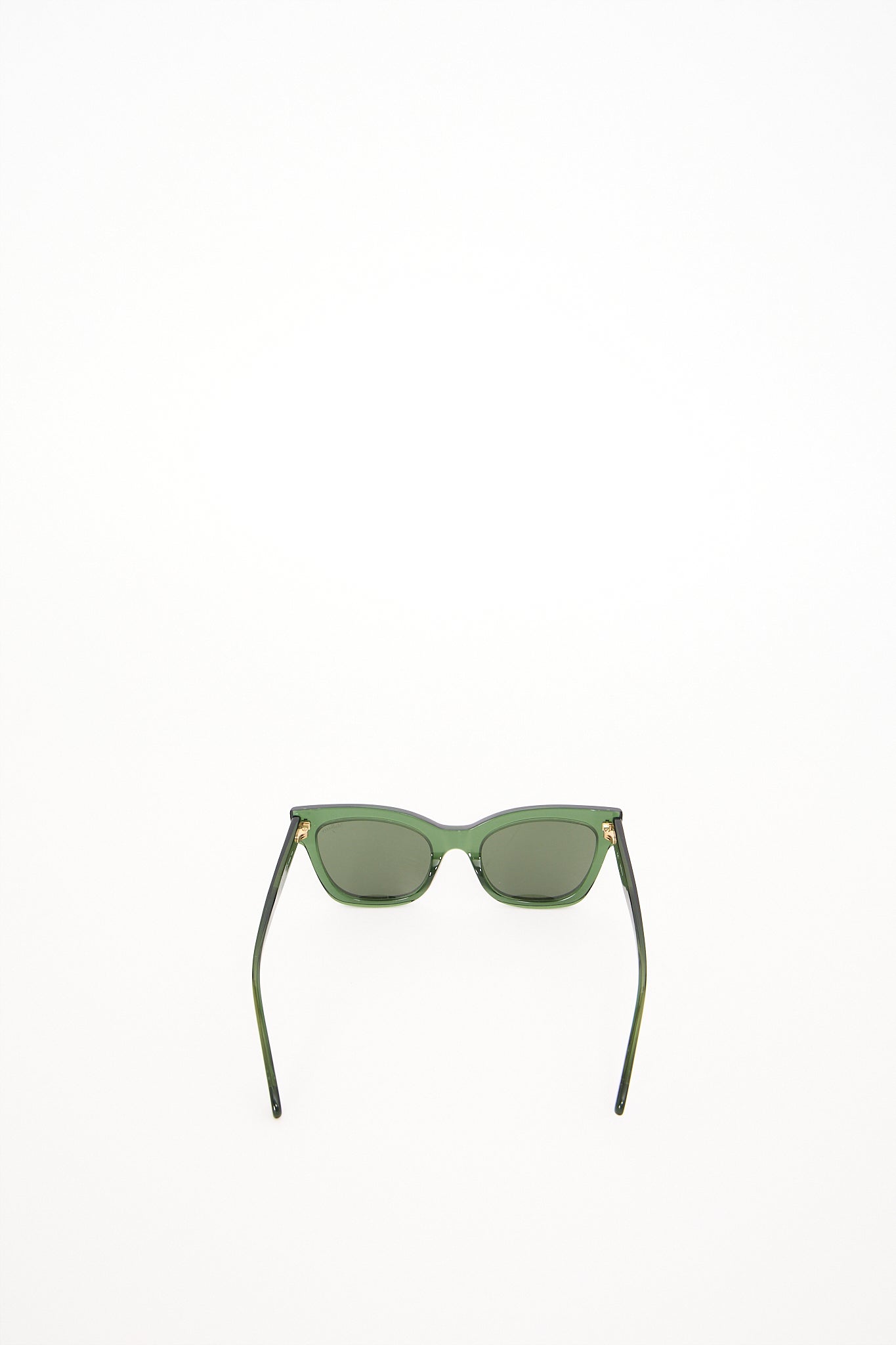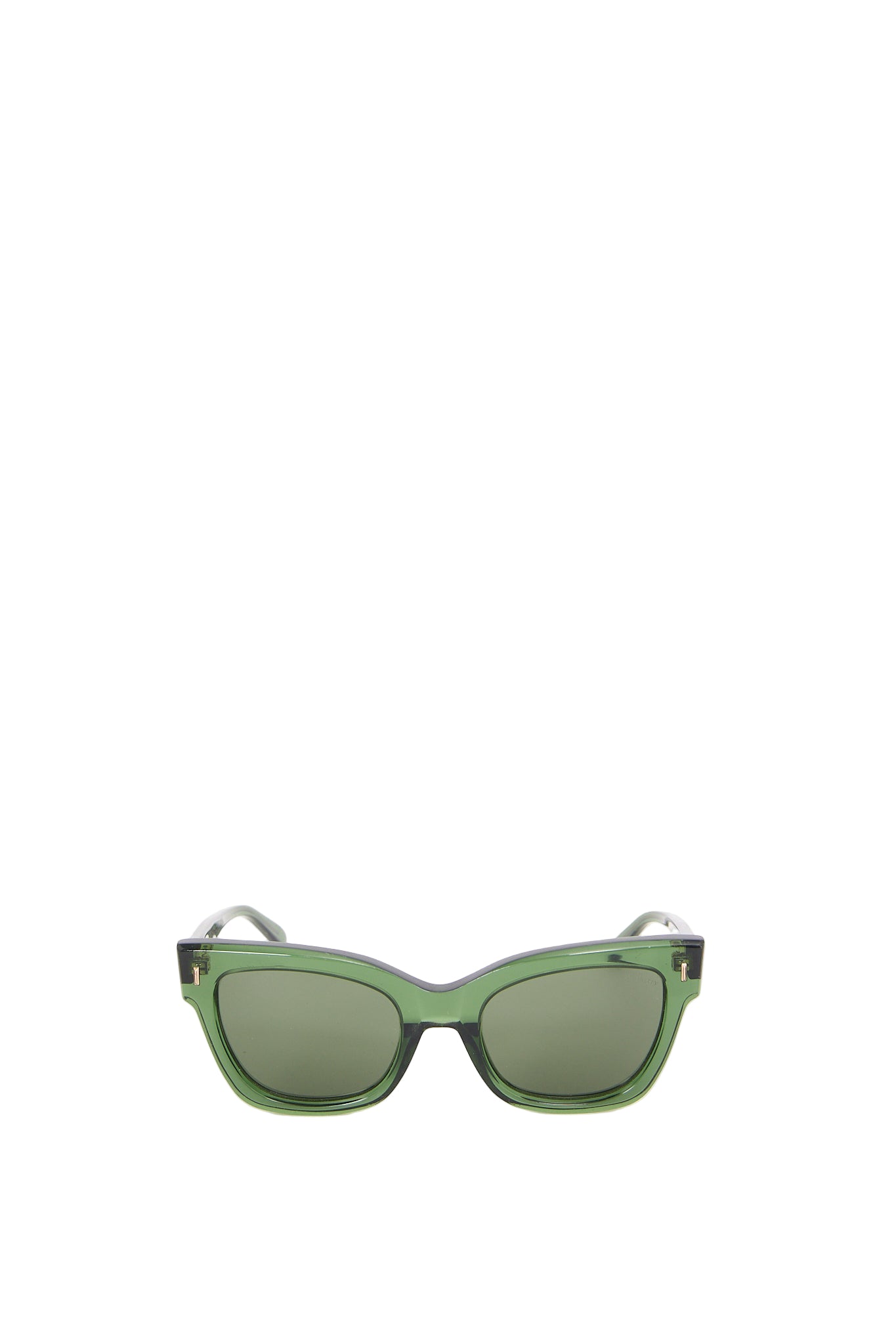 Elegante Mulberry solbriller i modellen Kate i glat mørkegrønt stel med guldfarvet detaljer og den karakteristiske Mulberry tekst på siden. Solbrillerne kombinerer britisk håndværk med moderne minimalisme - et tidløst design. Med sit rene udtryk og luksuriøse finish passer de perfekt til både hverdagsbrug og aftenlook.